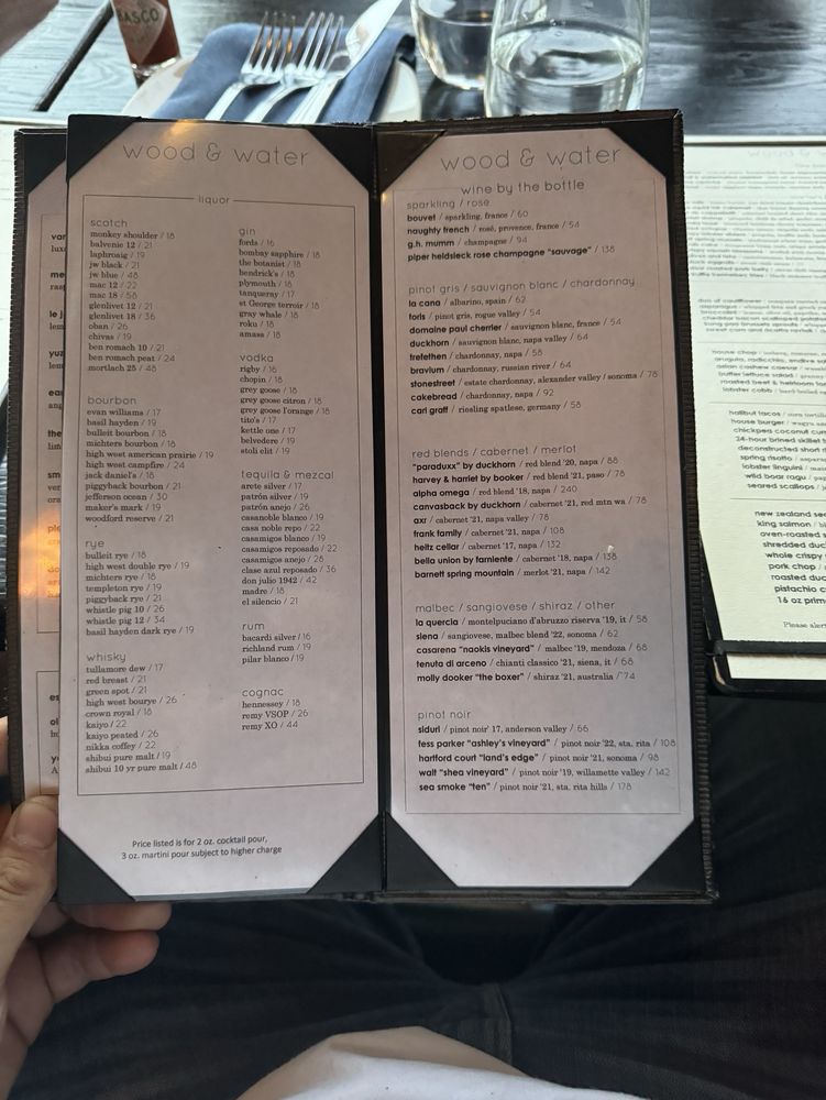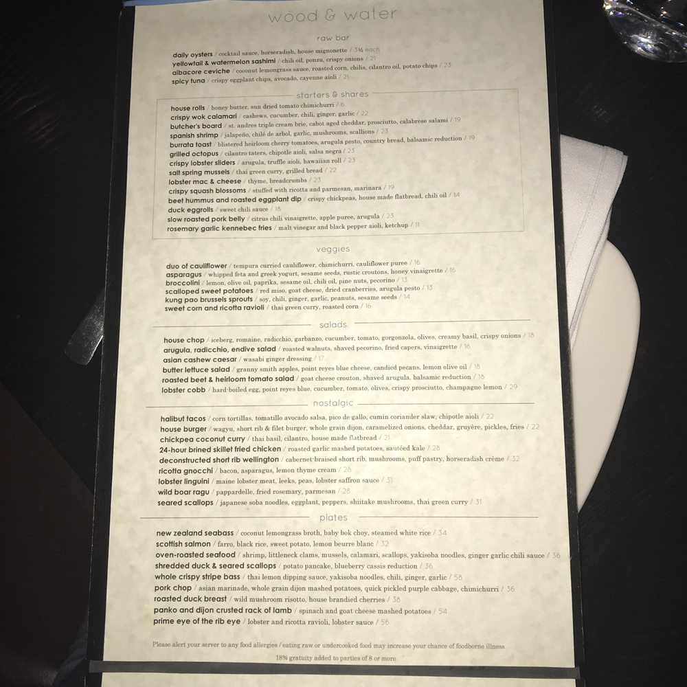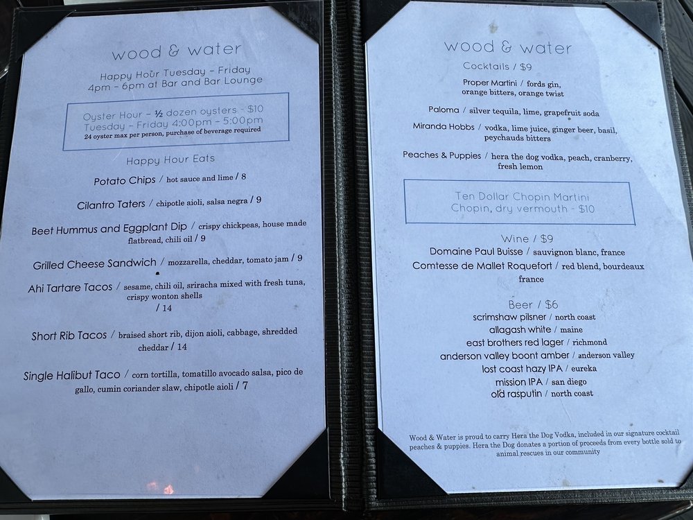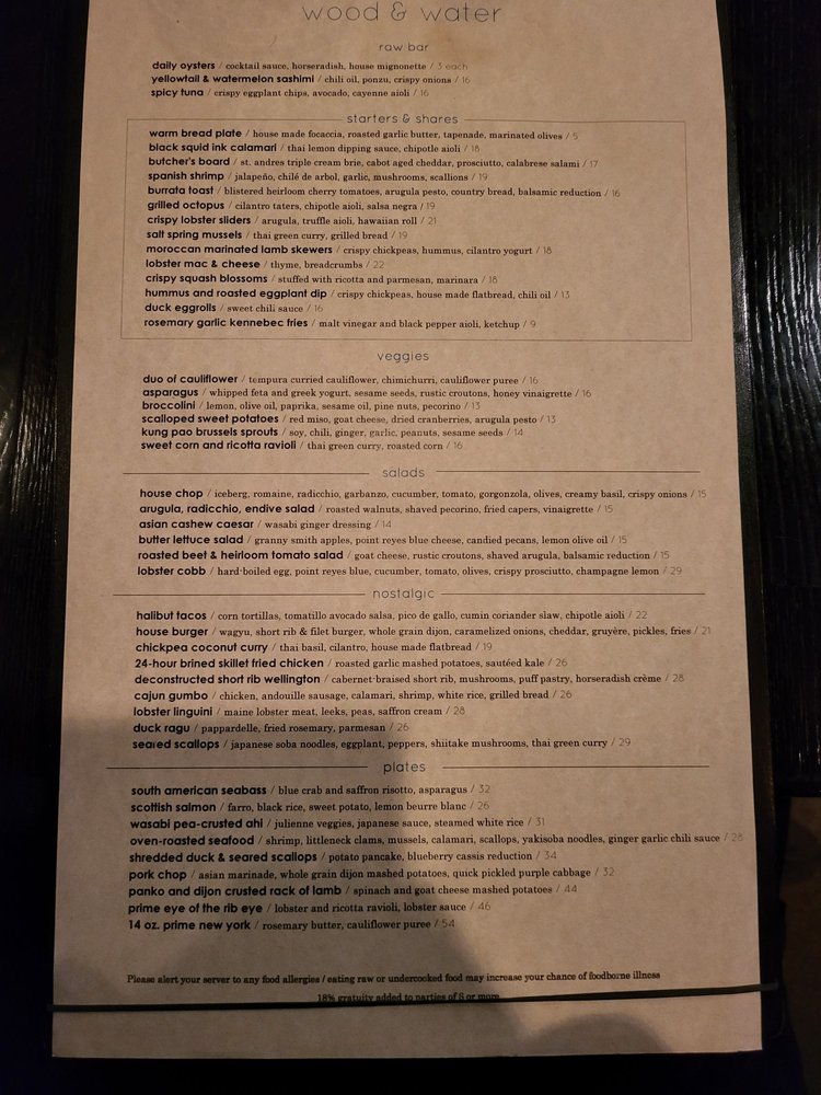 Wood & Water Menu